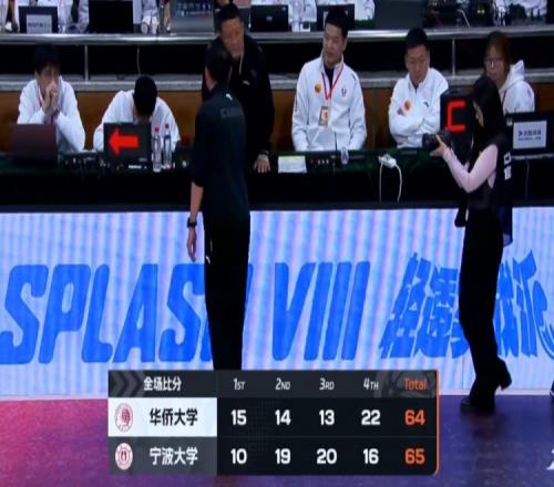 首节之争两支球队开局手感都不是很好,两支球队前2分30秒都至打进一记运动战进球,华侨大学虽然依靠叶润峰的进球率先拿分,但宁波大学找到感觉后稳定输出送上7-2的攻势取得微弱领先,节中华侨大学及时回暖回敬11-2的攻势夺回主动权,第一节双方状态起伏不定,宁波大学本节最后3分钟里仅得1分,华侨大学借此已15-10领先结束第一节。